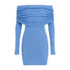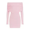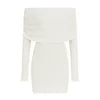 The moment you slip into this dress, the world softens. Imagine the whisper-soft touch of our exclusive textured knit against your skin, a gentle embrace that moves as you do. As you enter the room, the fabric catches the low light, emitting a subtle, sophisticated shimmer that draws every eye without a single sound. This isn't just a dress; it's a feeling of quiet confidence, an aura of effortless elegance. The sculptural off-the-shoulder drape frames your collarbones, creating a portrait of modern romance. It’s the perfect canvas for your evening—style it with delicate gold jewelry and strappy heels for a rooftop cocktail party, or pair it with pearl earrings and a classic clutch for a formal winter affair. This is your transformation into the woman who is remembered.