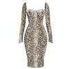 Command the room without saying a word. This isn't just a dress; it's a statement of primal confidence and refined allure. Imagine the feeling of the second-skin power mesh, printed with a hypnotic snakeskin pattern, tracing your silhouette to perfection. The delicate whisper of lace along the neckline softens the bold print, creating an intoxicating balance of danger and romance. As you walk, the midi length offers a sophisticated, leg-lengthening effect that captivates with every step. This is the dress for late-night cocktails at a rooftop bar, a pivotal date night, or any moment you decide is yours to own. Style with minimalist black heels and fine gold jewelry to let your presence be the main event. You're not just wearing a trend; you're becoming an unforgettable vision.