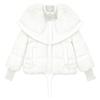 Our signature design element, the oversized shawl collar, is made from genuine, Saga Furs® certified white fox fur, which is fully detachable for versatile styling and simplified care.