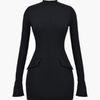 Command the room without saying a word. This is not just a dress; it is your new armor. The Sculpted Mock Neck Dress is an architectural masterpiece, designed to carve an unforgettable silhouette that is both powerful and poised. Feel the substantial weight of our signature sculpting fabric as it contours to your form, creating a smooth, statuesque line from the confident high neckline to the daring mini hem.