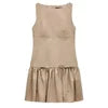 sculptural silhouette," "architectural design," "structured bodice," "boat neck," "minimalist aesthetic," "summer event wear," "vacation dress," "day-to-night outfit," "gathered skirt," "drawstring waist detail