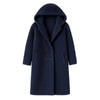 plush silhouette," "statement outerwear," "winter wardrobe essential," and "cocoon coat