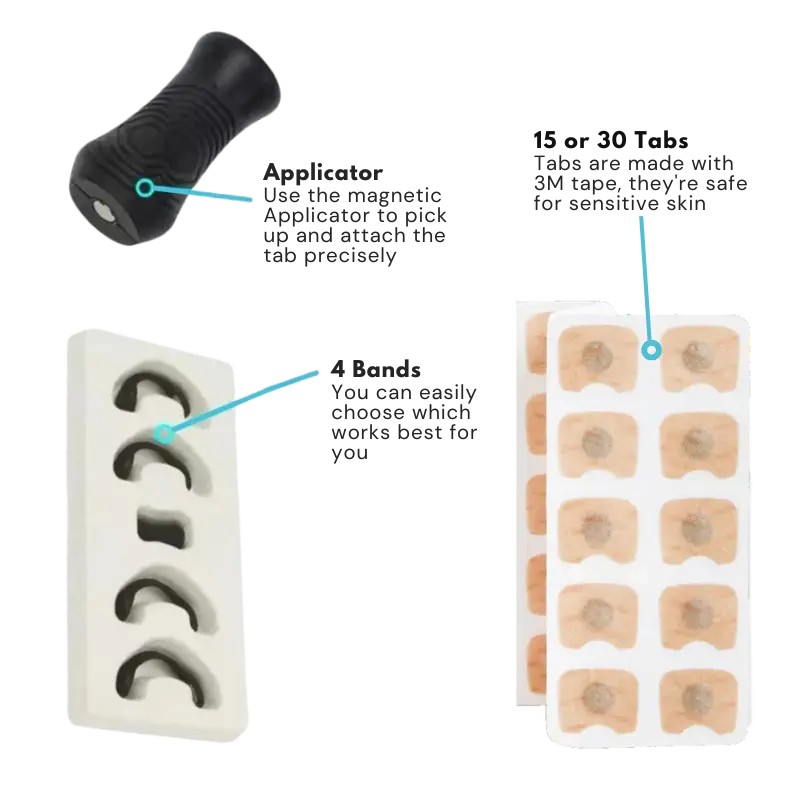 OxyBreathe™ Nasal Strips use two small adhesive patches with magnets, placed on the outside of each nostril. A plastic strip connects to the magnets, gently lifting and opening the nasal passages, which increases airflow and relieves congestion. This simple, non-invasive design promotes natural breathing, reduces mouth breathing and snoring, and enhances sleep quality.